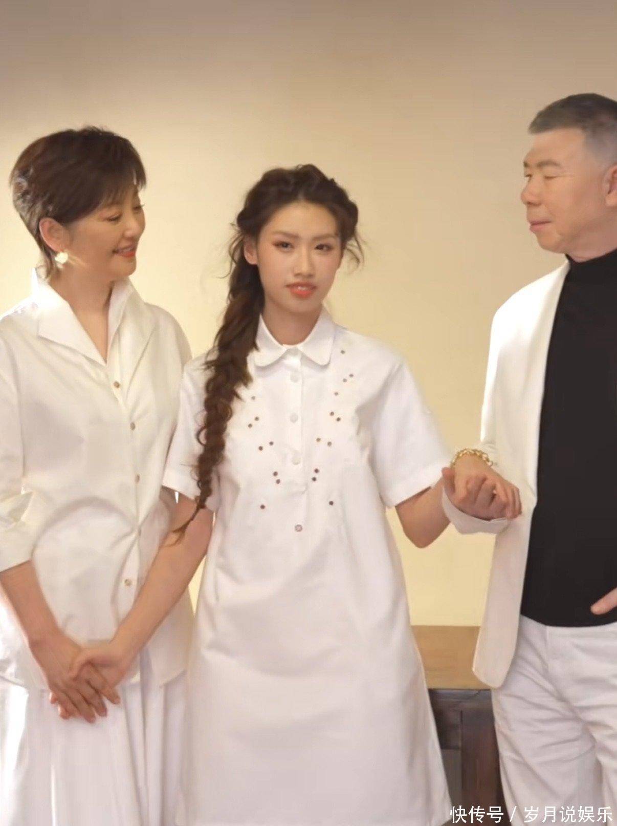 他们一家三口同框的画面,真是暖意融融。徐朵站在正中间,双手轻轻搭在父母的肩头,冯小刚眯着眼,神情里满是幸福。