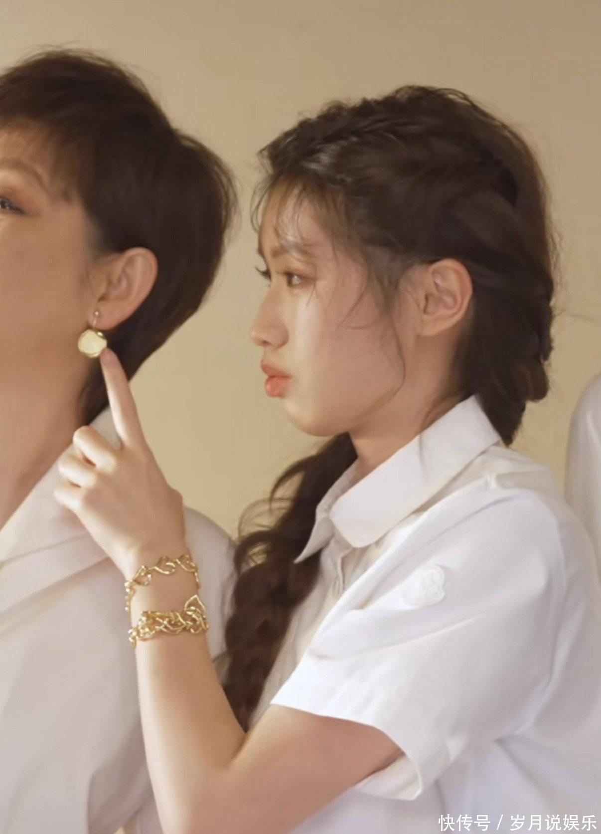 徐朵这回打扮得特别有少女感,清纯里还透着点甜滋滋的味道。她穿了件白色半高领毛衣,头发梳成了公主式的半扎发型,看着既温柔又甜美,那若隐若现的腿显得整个人都轻盈了不少。