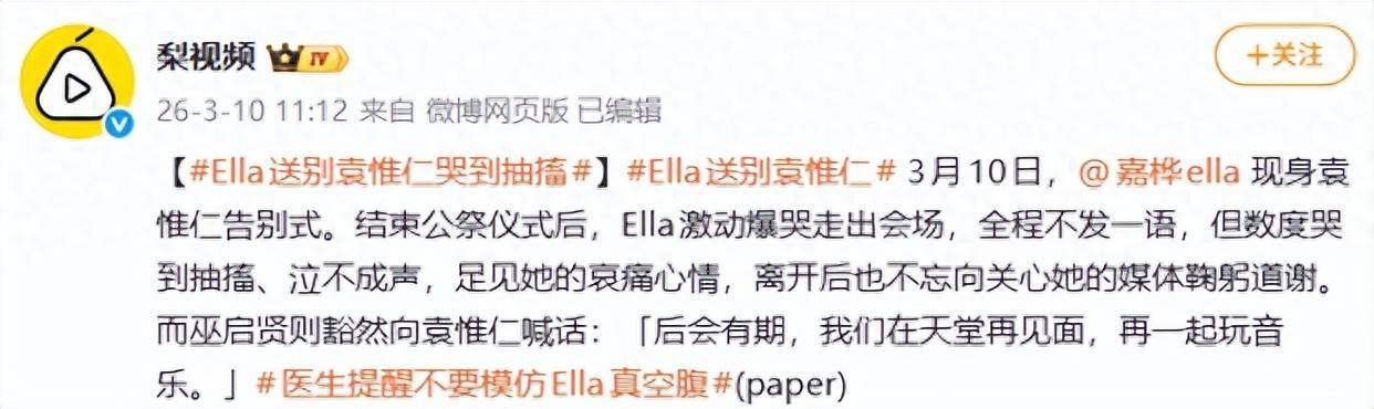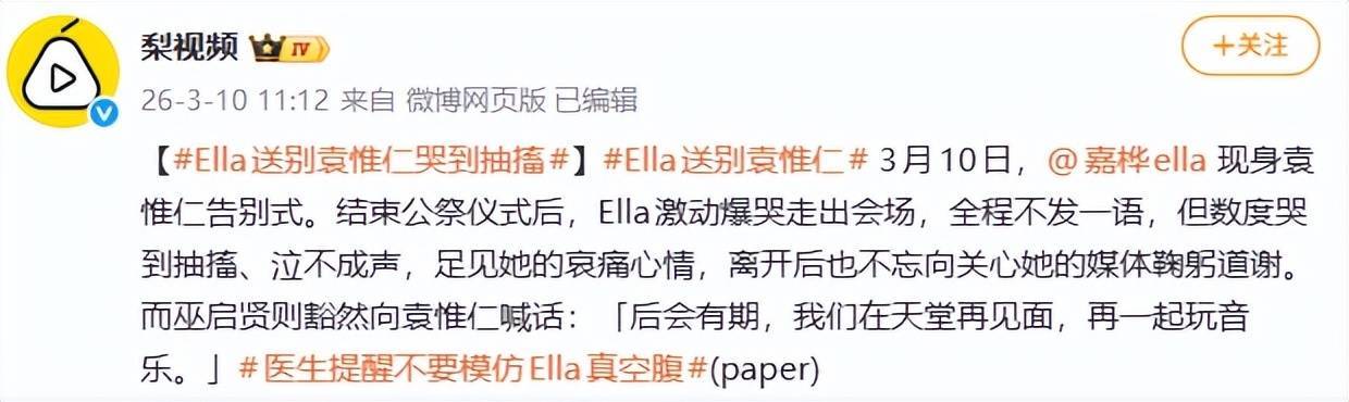 哭到全身抽搐,肩膀一抽一抽的,连站都站不稳,得靠身边的工作人员紧紧搀扶着,才能慢慢往前走,没人见过这样的Ella。